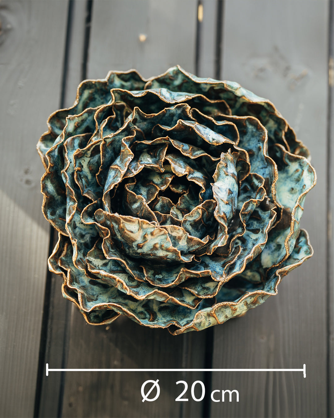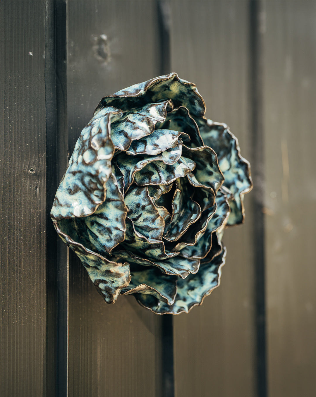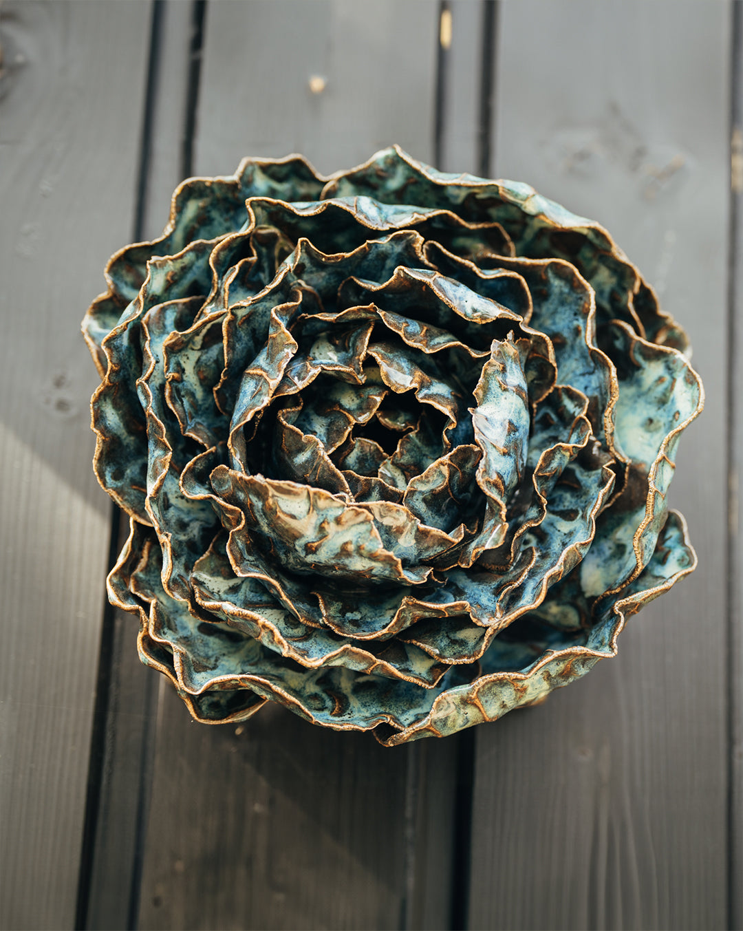 Kiekvienas žiedlapis formuotas rankomis, todėl kiekviena gėlė – unikali. Autorė – keramikė Indrė Svirskaitė.